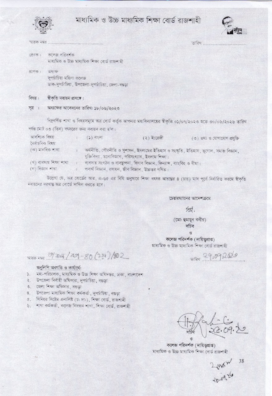 Rajshahi Board - 4251, National University - 2719, Technical Board - 20088, EIIN NO: 119470