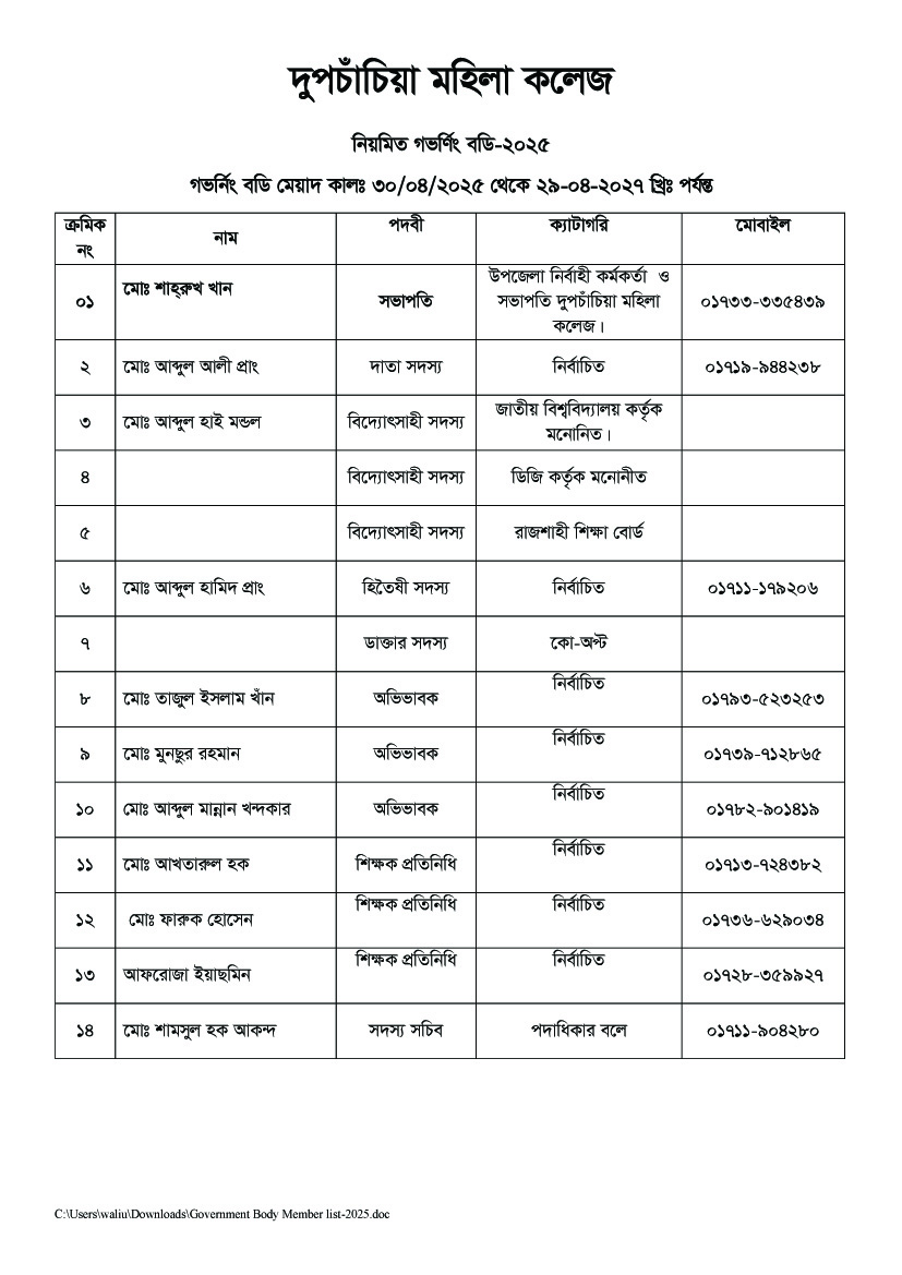 ডাকঘর ও থানা: দুপচাঁচিয়া , জেলা : বগুড়া